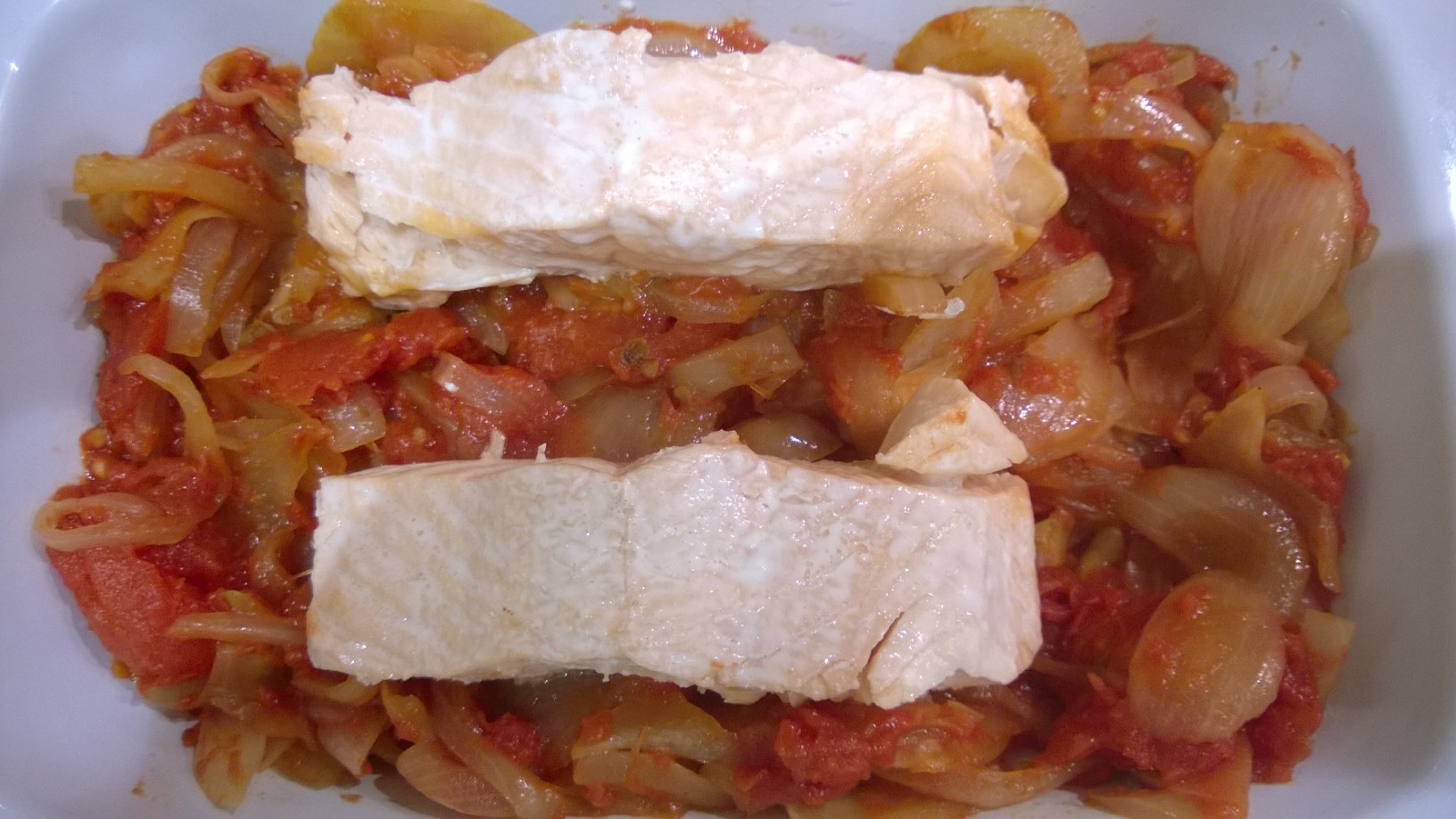 Pavés de saumon aux tomates et oignons